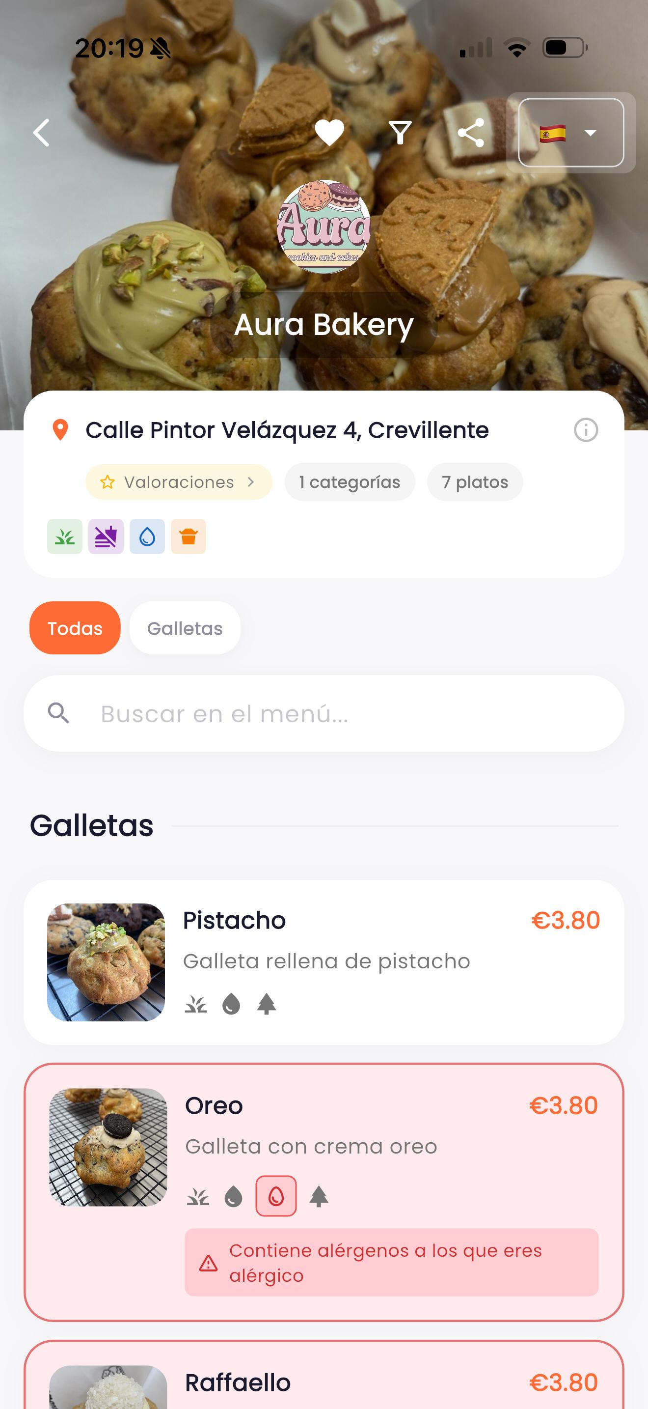 14 alérgenos según normativa EU. Tus clientes configuran sus intolerancias y reciben alertas automáticas en cada plato. Cumple con la regulación sin esfuerzo.